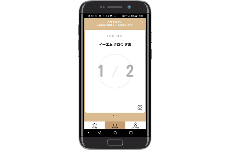 入場チェック画面を確認後、スタンプポンでラクラク入場できます。